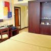 Стандартная комплекация: кондиционер, телевизор, телефон, разъем для подключения к Интернет, письменный стол, сейф, мини-бар, ванная комната/ душ, туалет, фен.